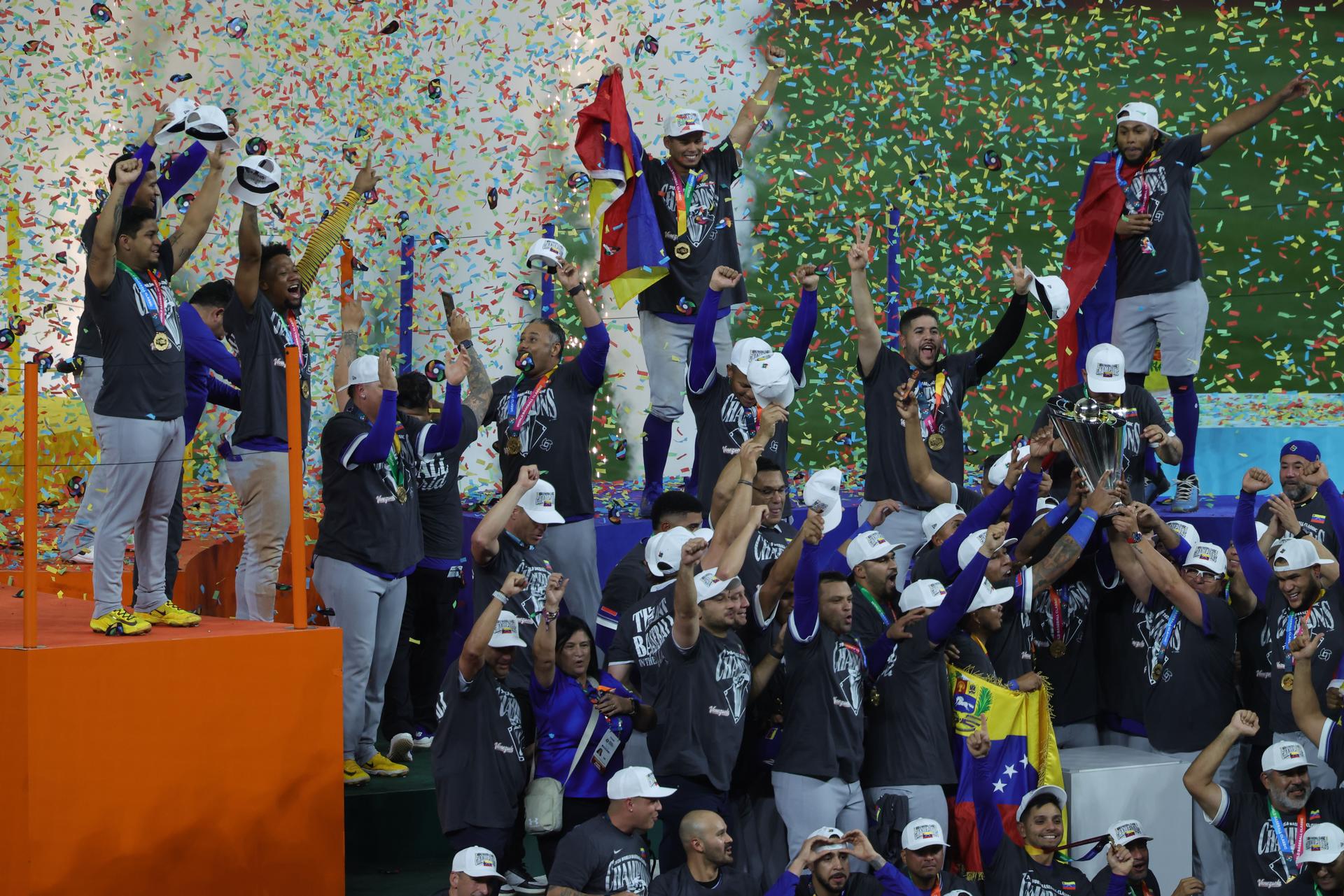 La selección de Venezuela se consagró este martes en Miami por primera vez como campeona del Clásico Mundial de Béisbol al derrotar a la de Estados Unidos por 3-2. EFE/EPA/CRISTOBAL HERRERA-ULASHKEVICH