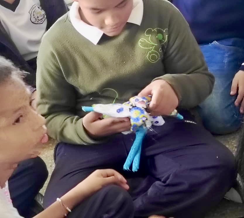 El encuentro no solo fue teórico; también incluyó una muestra de muñecas elaboradas por las facilitadoras, la cual sirvió de inspiración para que los estudiantes comprendieran el valor de lo hecho a mano.
