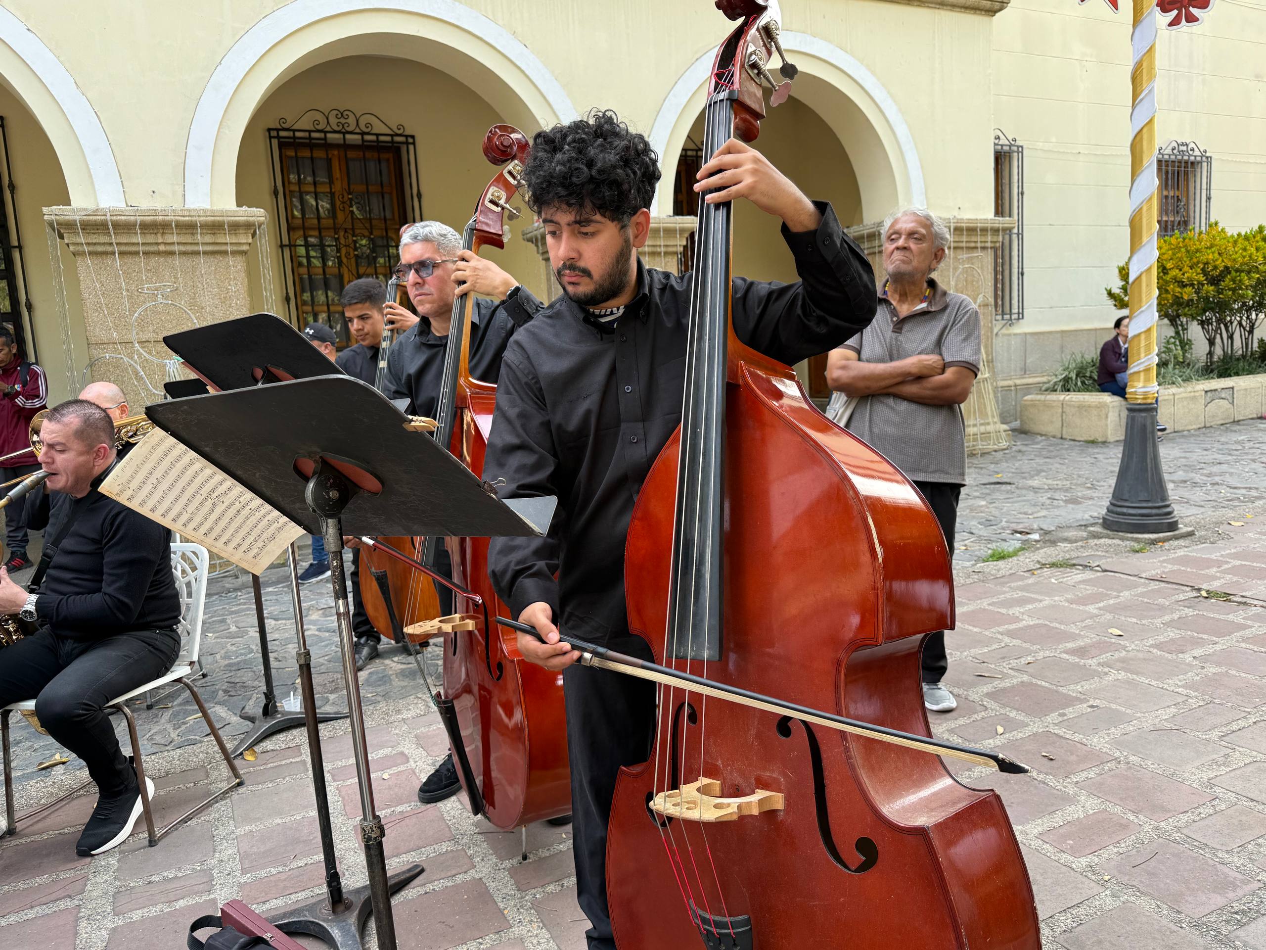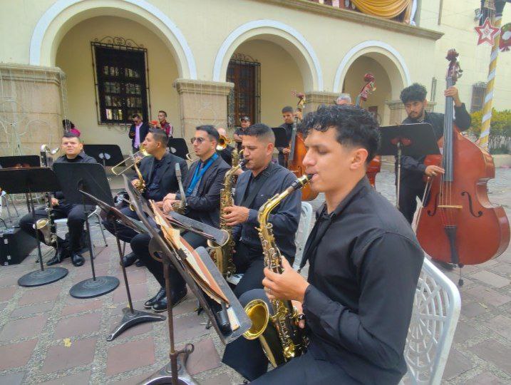 La orquesta, compuesta por 40 músicos, deleitó a los presentes con un repertorio cuidadosamente seleccionado, que inició con el emblemático pasodoble «Feria del Sol», compuesto por el maestro Antonio Picón Cárdenas y decretado como himno oficial de la festividad por la municipalidad en el año 1981.