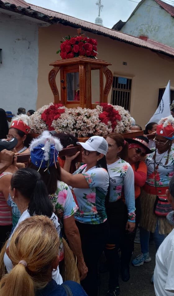 Destacaron los Sanbeniteros que el San Benito del templo San Juan Bautista de Betijoque, fue adornado para el día especial de la salida a calle, por Yaneira Bracho y Raíza Mercado.
