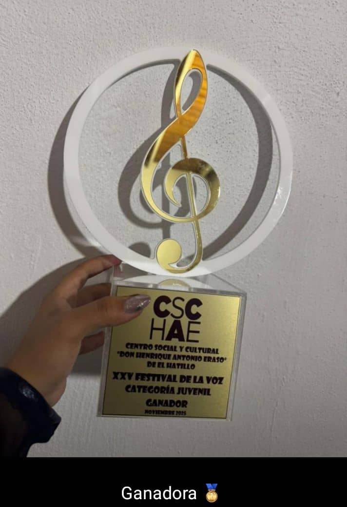Valeria quiso agradecer a sus paisanos «Hola a mí amado Boconó, quería compartir con ustedes que pude participar en el Festival de la Voz El Hatillo, fue una linda noche, donde pude interpretar «Sobreviviré» de la increíble Mónica Naranjo, realmente lo disfruté mucho y obtuve el primer lugar de la categoría juvenil, estoy muy feliz, gracias por el apoyo de ustedes y bendiciones».