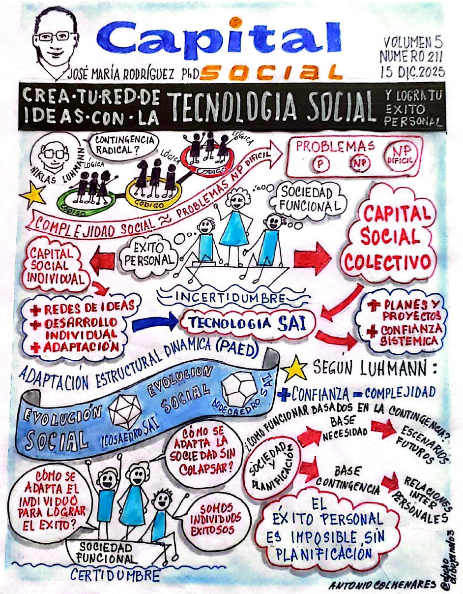 Uno de los problemas más difíciles de la sociología contemporánea es cómo gestionar (dirigir) la contingencia radical, entendida ésta como la definiera Niklas Luhmann, en cuanto a que cada subsistema funcional de la sociedad opera con su propio código y lógica. Adicionalmente, cada interacción social abre nuevas posibilidades, causando una complejidad social comparable a la de los problemas NP-difícil, con un espacio de soluciones que crece exponencialmente, y una elevada incertidumbre estructural. Para navegar en un mar de incertidumbres, si el objetivo es tener una sociedad funcional, se requiere crear capital social colectivo; pero, cuando el propósito es el éxito personal, hay que crear capital social individual. El apoyo tecnológico es fundamental.