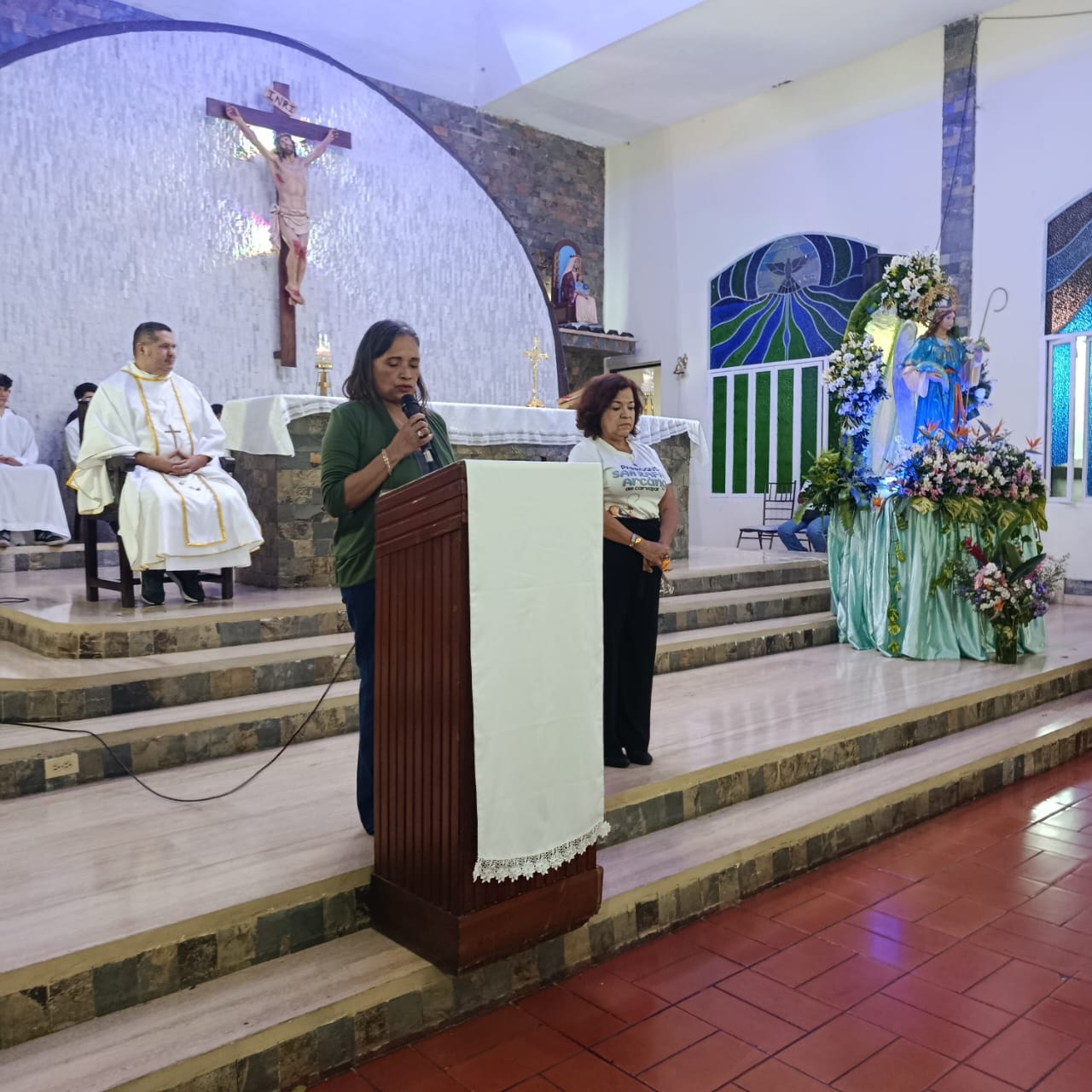 En cada día de la Novena, se rinde homenaje a quienes con su amor, vocación, espiritualidad, servicio y accionar en pro de la Iglesia y el bien común, son ejemplo para el prójimo. El primer día correspondió a la Sra. Mireya Peña de Cano.