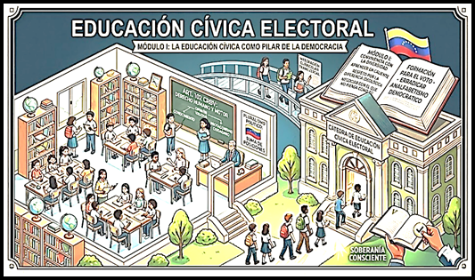 La propuesta de la Cátedra de Educación Cívica Electoral que impulsa esta Rectoría está estructurada en 5 Módulos. Hoy desarrollamos lo que consideramos debe ser el contenido del Modulo I: La Educación Cívica como Pilar de la Democracia Participativa  y Protagónica: Como bien señala el art. 102 de la CRBV, la educación es un derecho humano y un deber social fundamental, es la base de toda nuestra formación y la que nos impulsa a pasar de simples observadores a ser protagonistas de nuestra propia historia y del destino de nuestro país. Se trata de formarse como ciudadanos como la única forma de que nadie decida por nosotros. Existen numerosas experiencias, tanto nacionales como internacionales, que demuestran como la educación cívica ha fortalecido la participación y el respeto al pluralismo. Ese pensar lo apreciamos en los centros de estudiantes de nuestras universidades que ejercitan la democracia. Es el respeto por la diversidad ideológica y la convivencia con diversas organizaciones y partidos políticos. Es el espacio en el cual nos corresponde sentarnos a negociar con el que no piensa como uno y comprender que el pluralismo, más que una pelea, ese una suma de posiciones e intereses que apuntan hacia un bien común, experiencia que nos prepara para la vida real. Pero para que esto funcione, no debe tratarse de una charla una vez al año o cuando acontecen las elecciones. La idea es que la educación cívica electoral se inicie desde temprano a nivel de secundaria y se fortalezca en las universidades. De lograr que la educación cívica y el ejercicio por la democracia sea parte del día a día en el pensum educativo venezolano, estaremos formando personas dispuestas a construir el país que queremos.