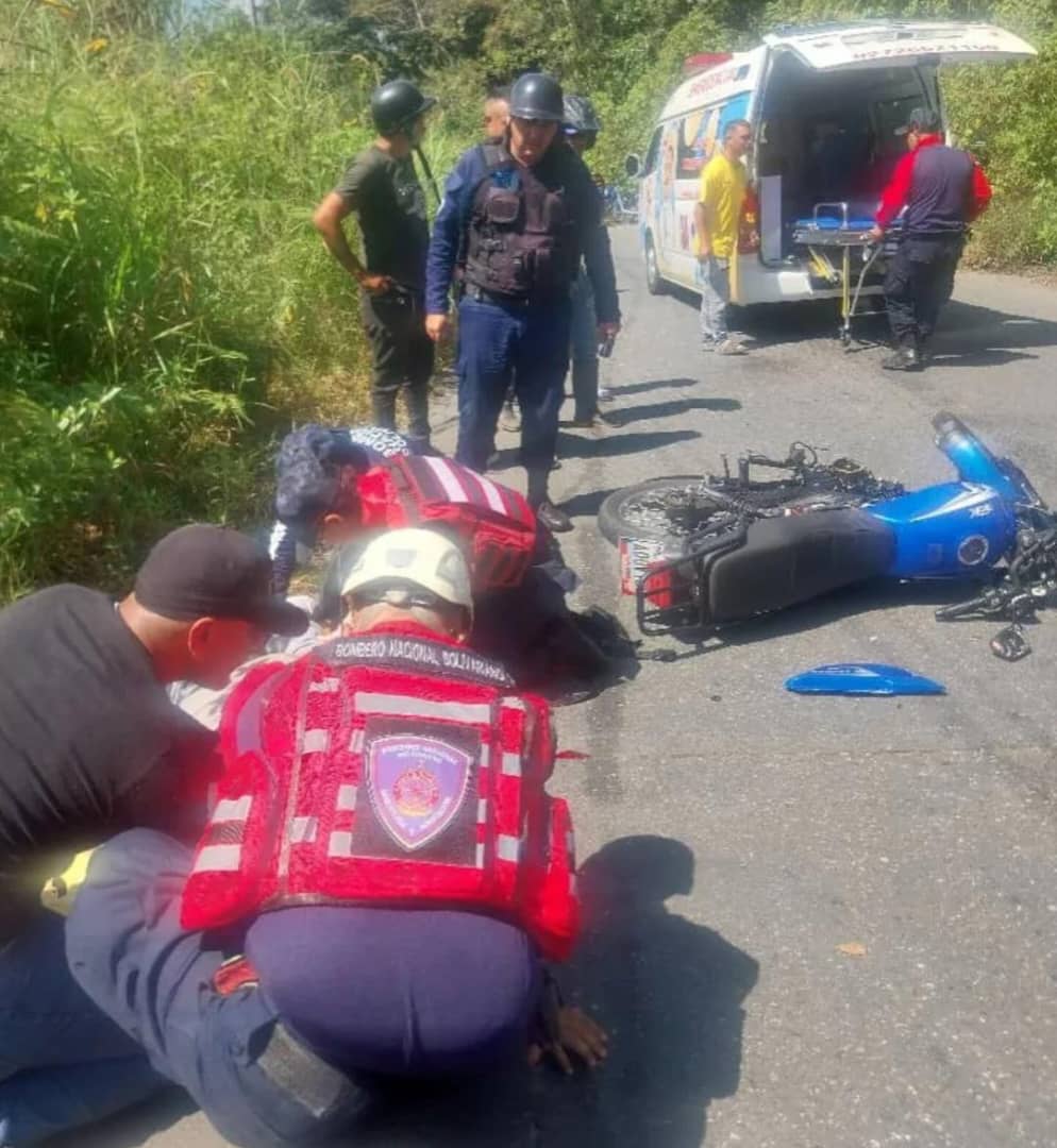 Mientras que Yohander Arraiz que manejaba la moto fue inmovilizado y trasladado por los bomberos al hospital con múltiples lesiones, al lugar llegó una comisión de la Policía Nacional Bolivariana.