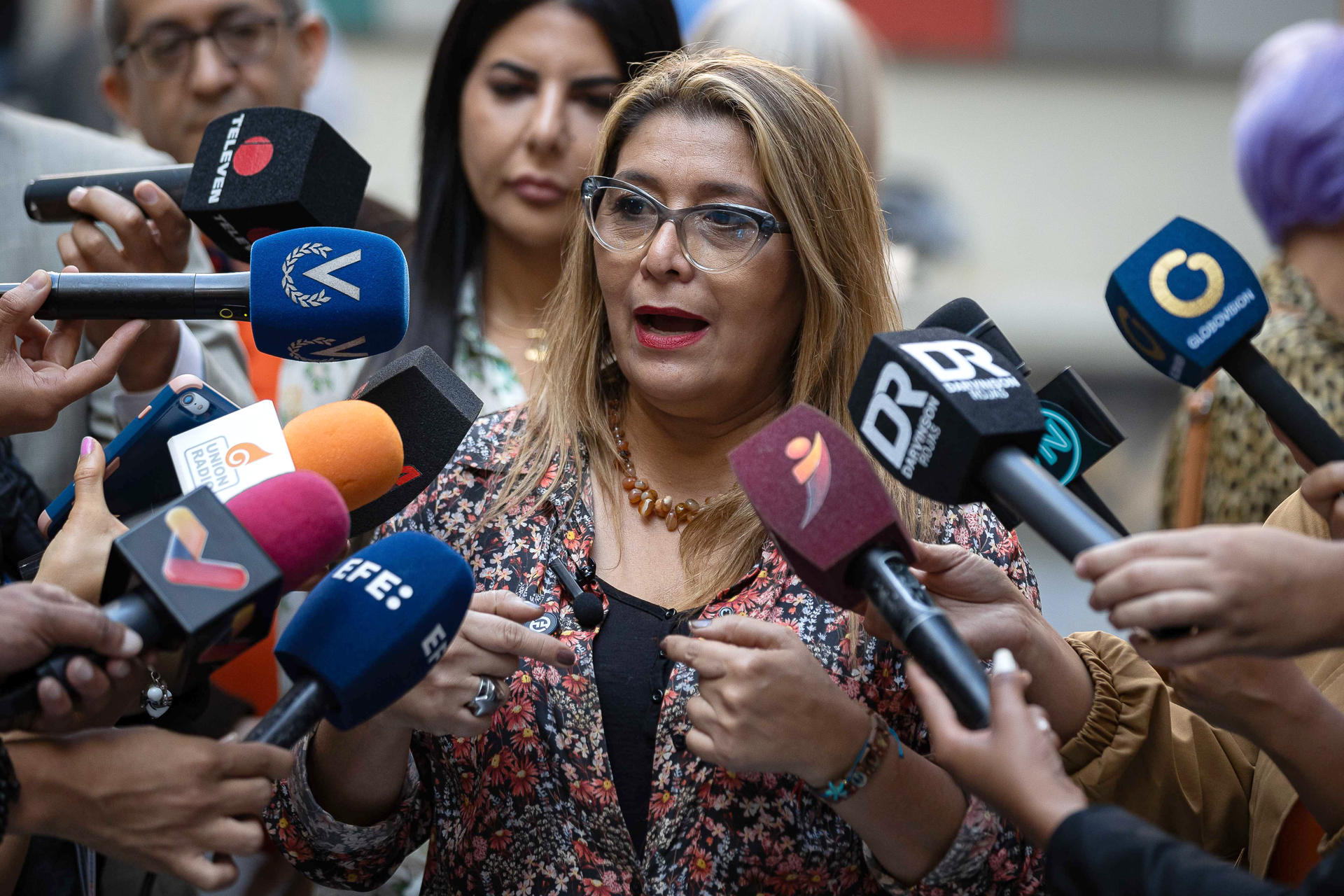 La abogada, Indira Urbaneja, habla durante una rueda de prensa este viernes, en Caracas (Venezuela). EFE/ Ronald Peña R