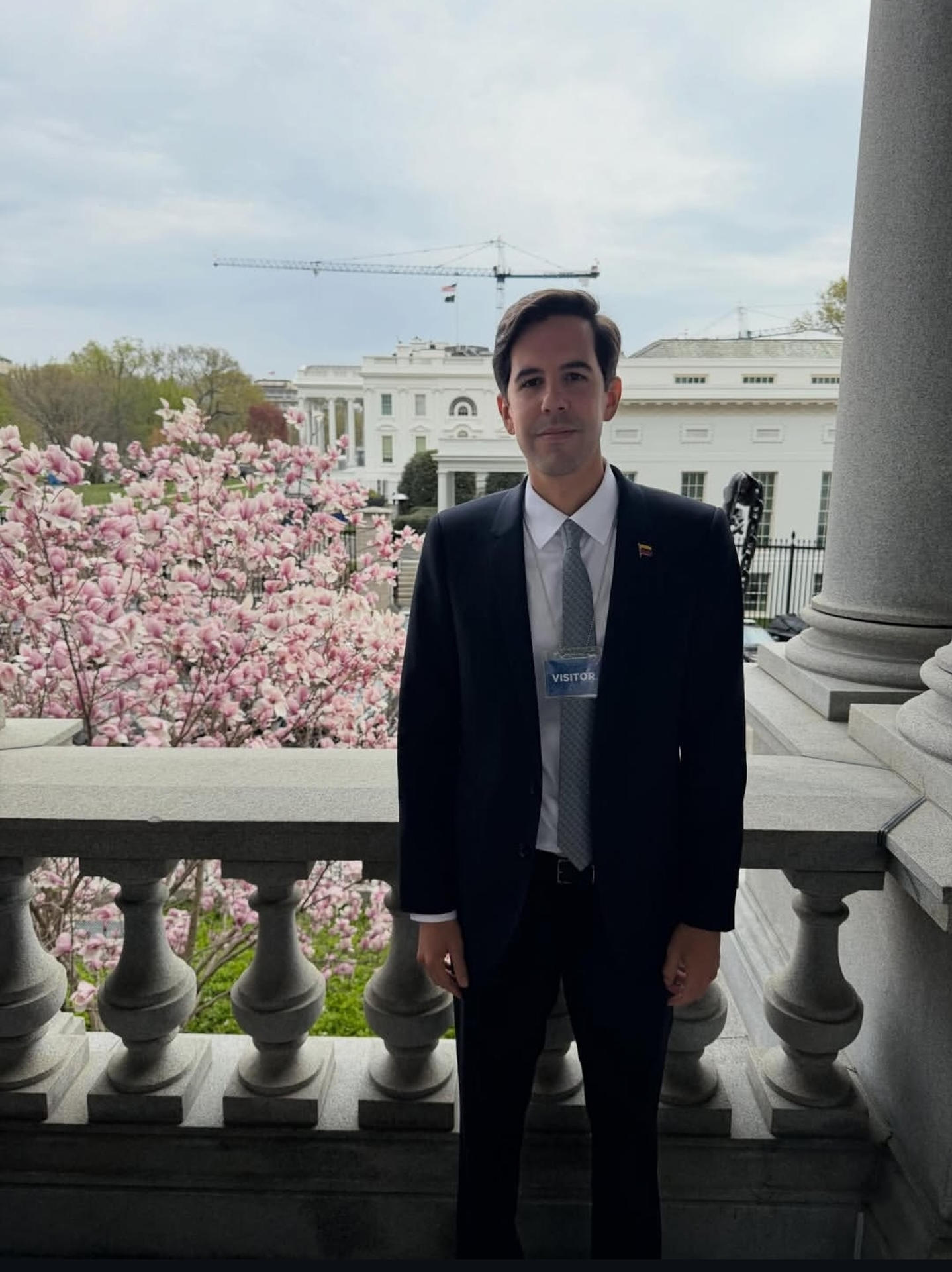 Fotografía tomada de la cuenta oficial en la red social Instagram del viceministro venezolano para Europa y Norteamérica, Oliver Blanco, @oliverblanco posando este miércoles, en Washington (EE.UU.). EFE/ @oliverblanco