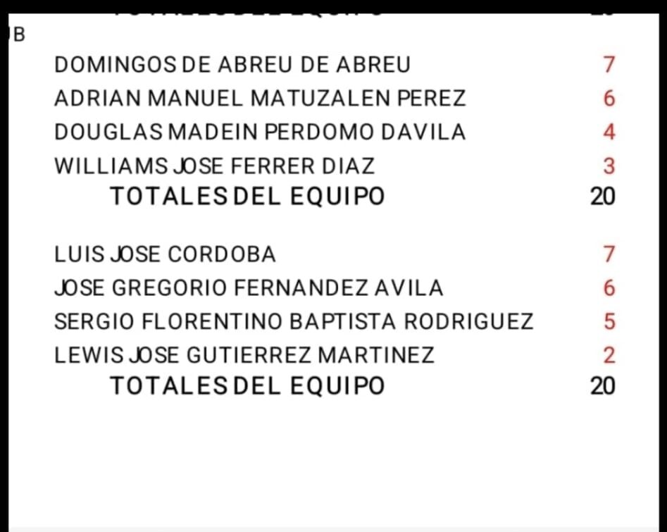 3) Douglas Madein Perdomo Dávila 4 puntos.