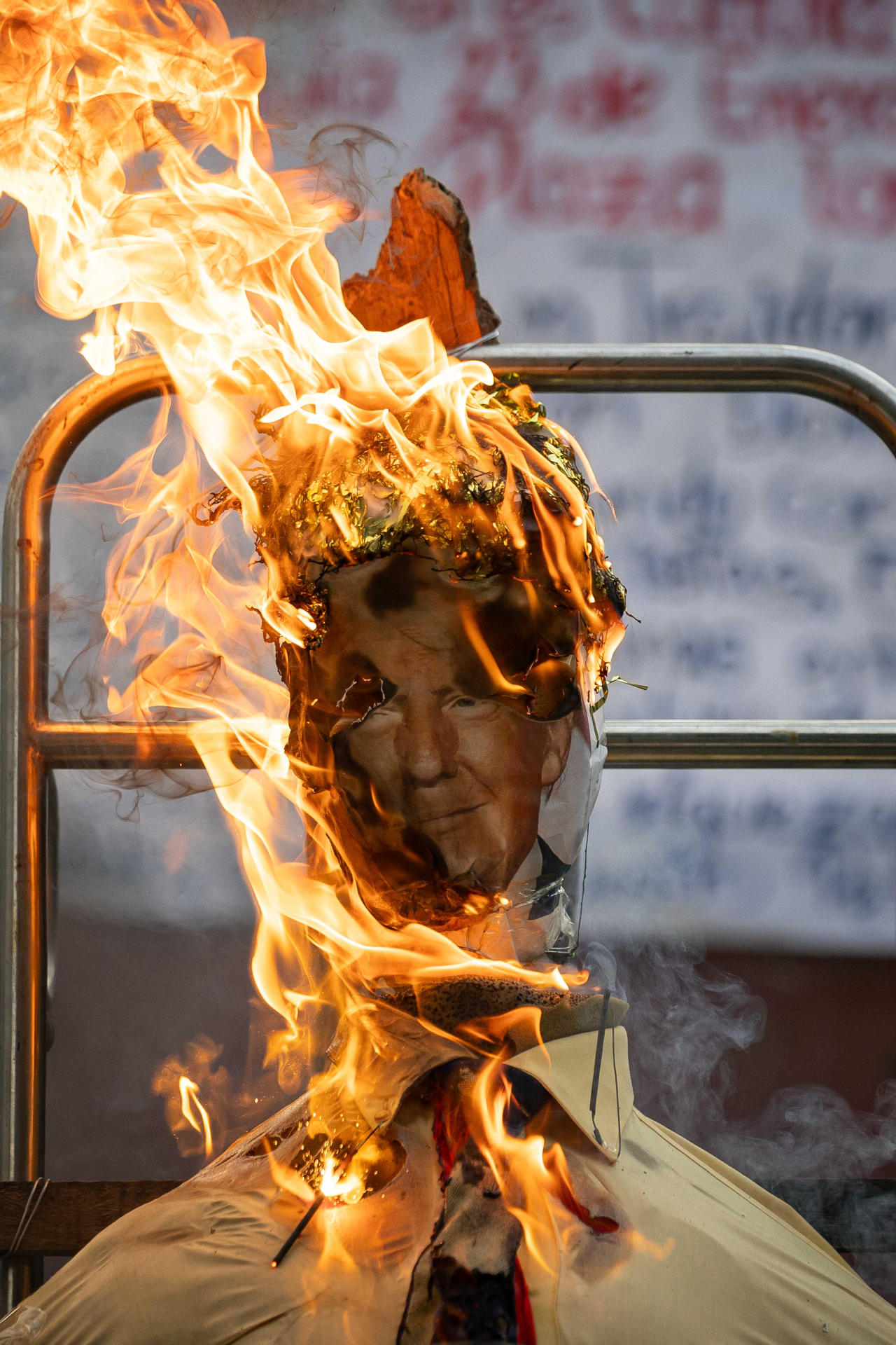 Caracas, 5 abr (EFE).- Un muñeco de trapo que representa la indiferencia, otro sobre el maltrato que viven los presos políticos en Venezuela y del presidente de Estados Unidos, Donald Trump, fueron incinerados en la tradicional Quema de Judas en el país, como parte de la Semana Santa.