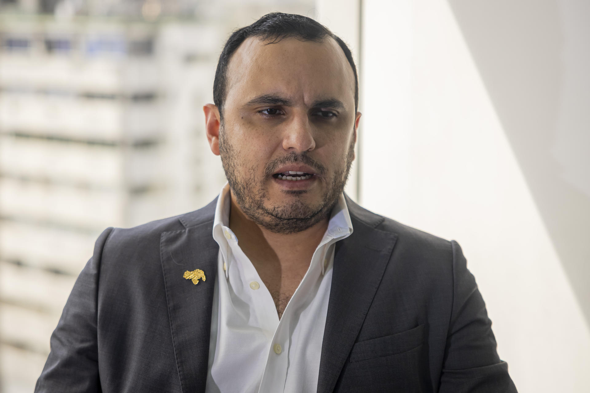 Fotografía del 28 de enero del 2026 que muestra al politólogo Pablo Andrés Quintero hablando durante una entrevista con EFE, en Caracas (Venezuela). EFE/ Miguel Gutiérrez