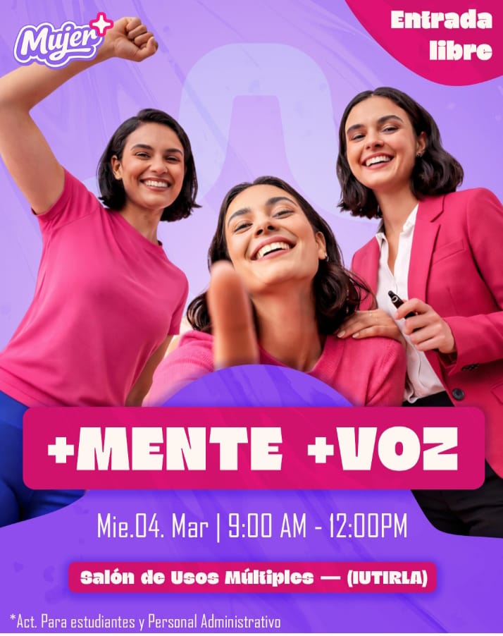 En el marco de la conmemoración del Día Internacional de la Mujer, el Salón de Usos Múltiples del IUTIRLA, sede La Beatriz en Valera, fue el epicentro de una importante jornada de sensibilización y formación académica denominada “+ Mente + Voz”. El evento, realizado este miércoles 4 de marzo, reunió a la comunidad universitaria en torno a un ciclo de ponencias orientadas a la defensa de los derechos femeninos y la salud mental.