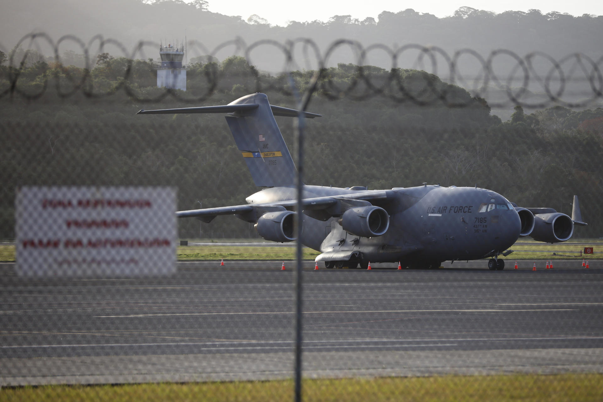 Fotografía de archivo de un Boeing C-17A de la Fuerza Aérea estadounidense, estacionado en el Aeropuerto Internacional de Panamá Pacífico, en Ciudad de Panamá (Panamá). EFE/ Bienvenido Velasco