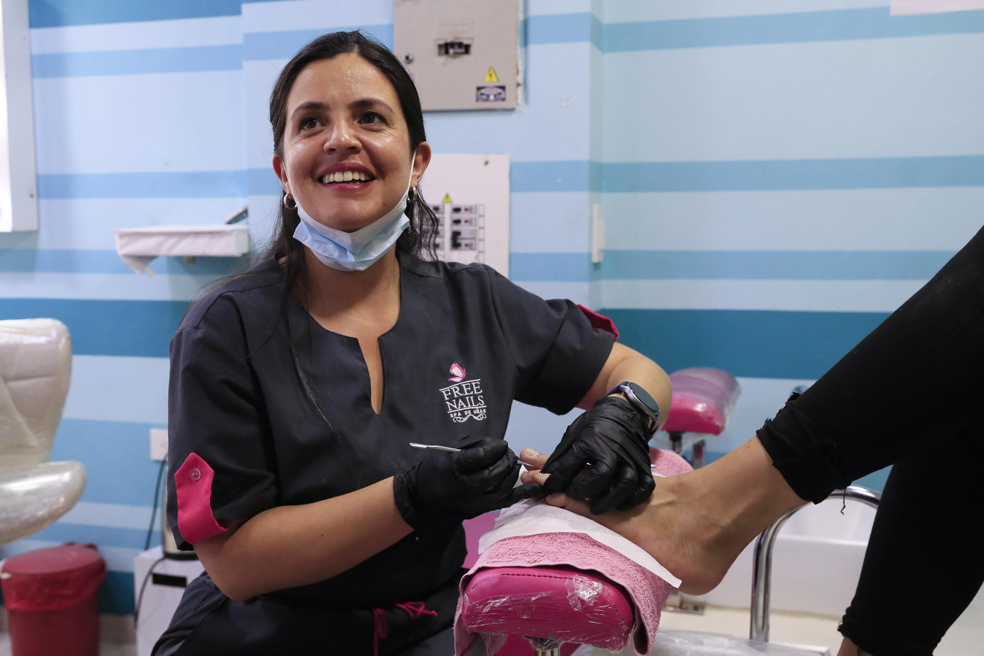 Fotografía del 12 de febrero de 2026 que muestra a la ciudadana venezolana residente en Colombia, Isamar Celín, haciendo un pedicura en Bogotá (Colombia). EFE/ Carlos Ortega