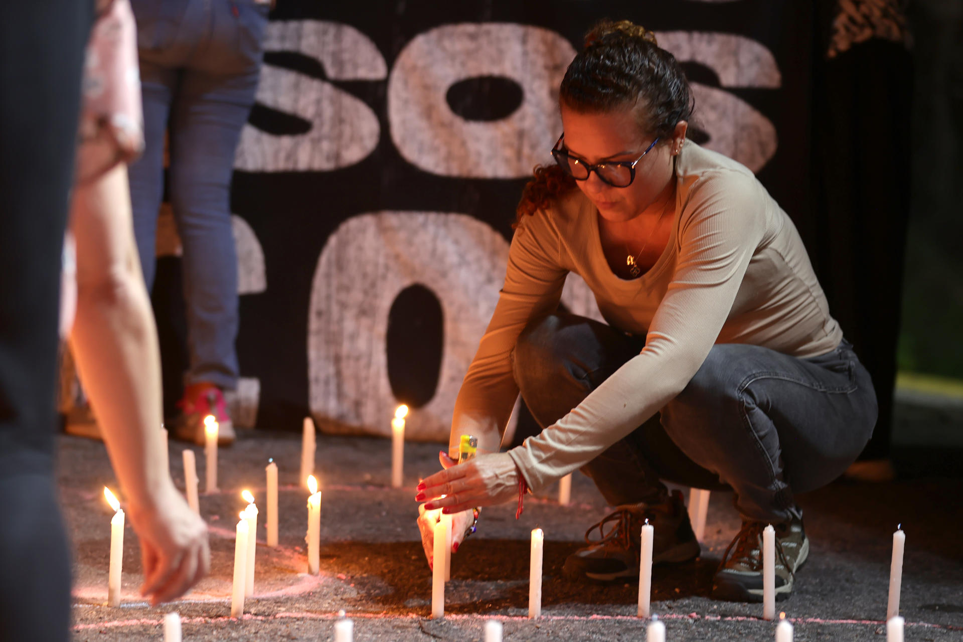 El grupo encendió varias velas que formaron las palabras «SOS Rodeo I», sostuvieron pancartas para exigir la liberación de todos los presos y algunos de los manifestantes se vistieron de color amarillo y usaron capuchas, para demostrar cómo son trasladados los detenidos de sus celdas hasta la zona de visitas.