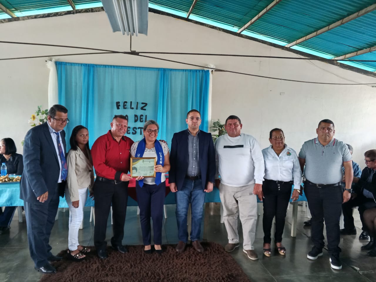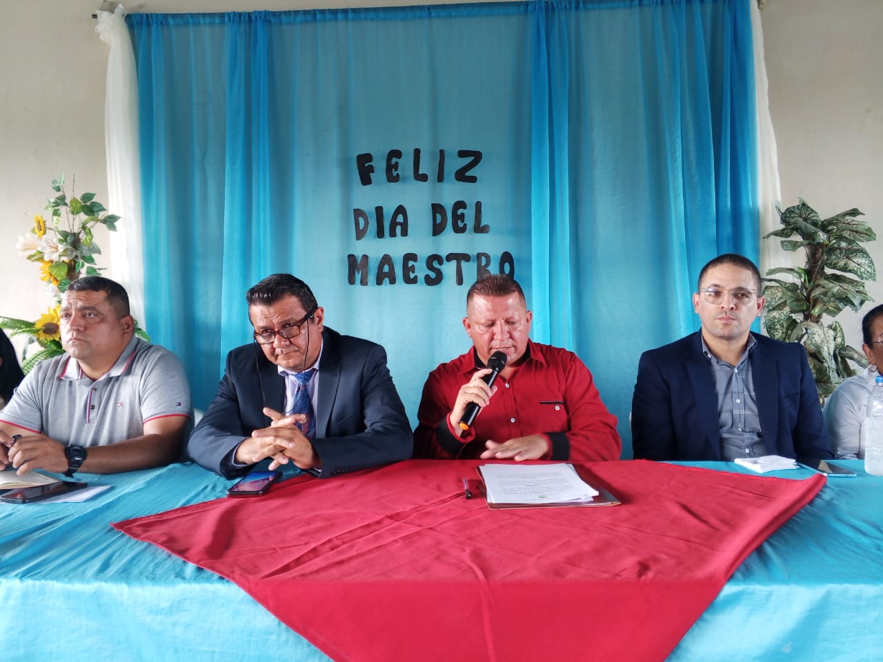 El presidium de la reunión especial del Concejo de Sucre, fue ocupado por el presidente del Ayuntamiento Jorge Gil, sus compañeros de Cámara, el Alcalde Keiver Peña, el Contralor municipal Reinaldo Niño y la oradora de orden Maziel Bolívar, profesora especialista en educación, estando en el lugar de la reunión numerosos invitados en su mayoría educadores del municipio, habiéndose entregado, como lo señala nota de la oficina de comunicaciones del gobierno municipal de Sucre, más de 50 reconocimientos a personal activo y jubilado de la educación en el municipio.