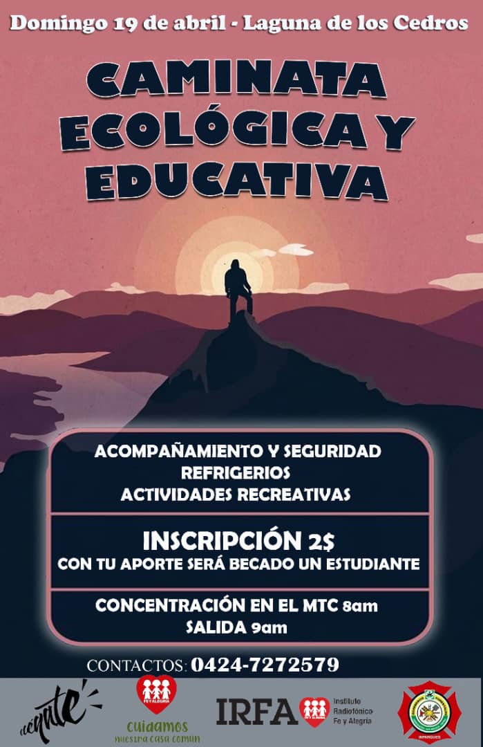 DLA.-El instituto Radiofónico Fe y Alegría del municipio Boconó invita a una caminata ecológica y educativa por una noble causa, becar a estudiantes para que puedan realizar sus estudios académicos en el municipio Boconó.
