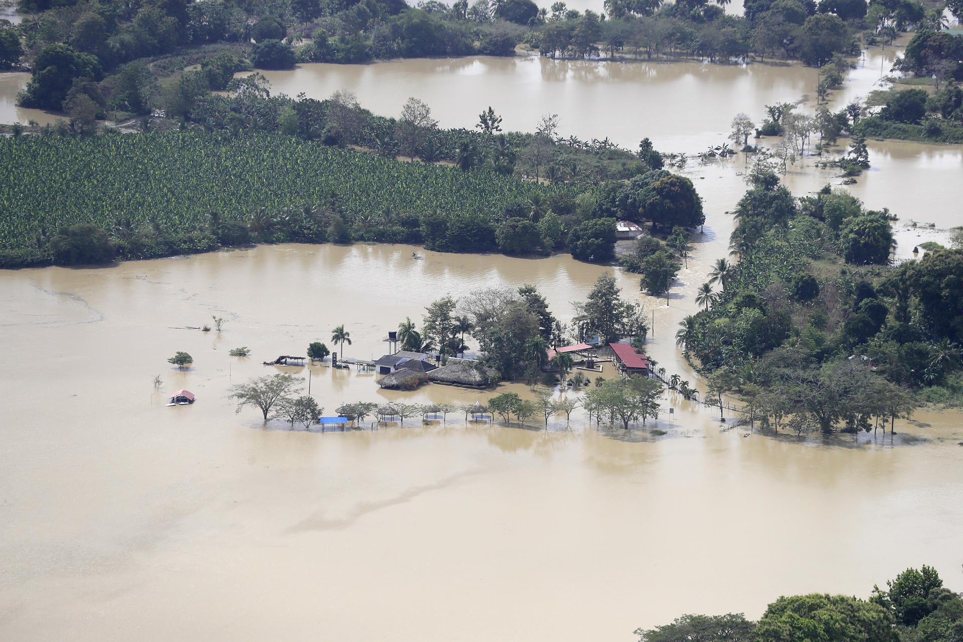 Además, el nivel del mar también está más alto de lo normal y esa combinación hace que el agua no pueda drenar hacia el mar Caribe con rapidez y permanezca estancada en los cultivos, lo que afecta gravemente las plantaciones y dificulta labores clave como la fumigación aérea.