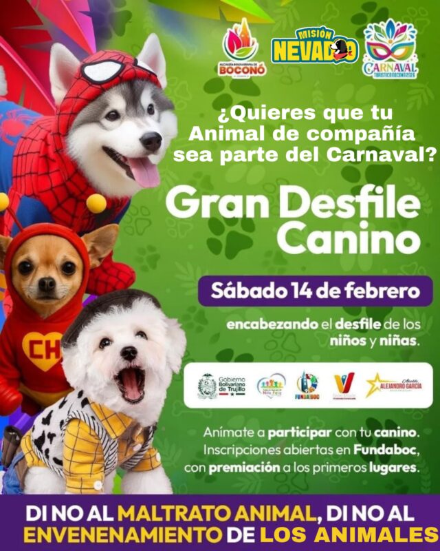 La Misión Nevado y los proteccionistas del municipio Boconó exhortan a la población a sumar a sus mascotas a las festividades carnestolendas del Jardín de Venezuela, una iniciativa que busca crear conciencia sobre sus derechos y necesidades.