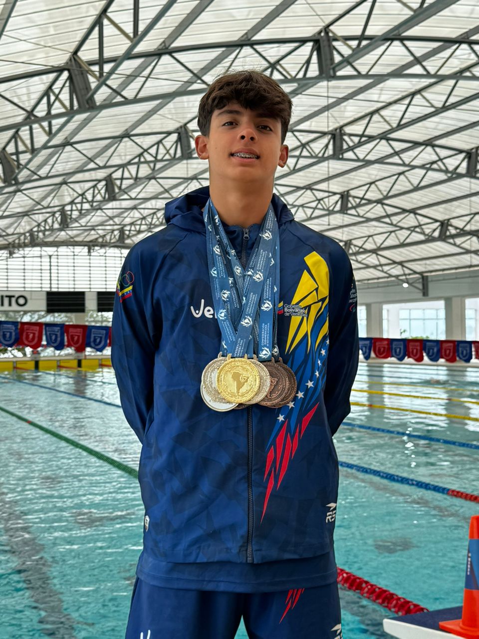 Sin que se hable mucho de él, este tritón quinceañero nacido en el estado Miranda, brazada a brazada y patada a patada labra una gran carrera. El atleta del Sport Center Los Naranjos, recién coronó 11 medallas en el Campeonato Sudamericano de Deportes Acuáticos Rio de Janeiro 2025.