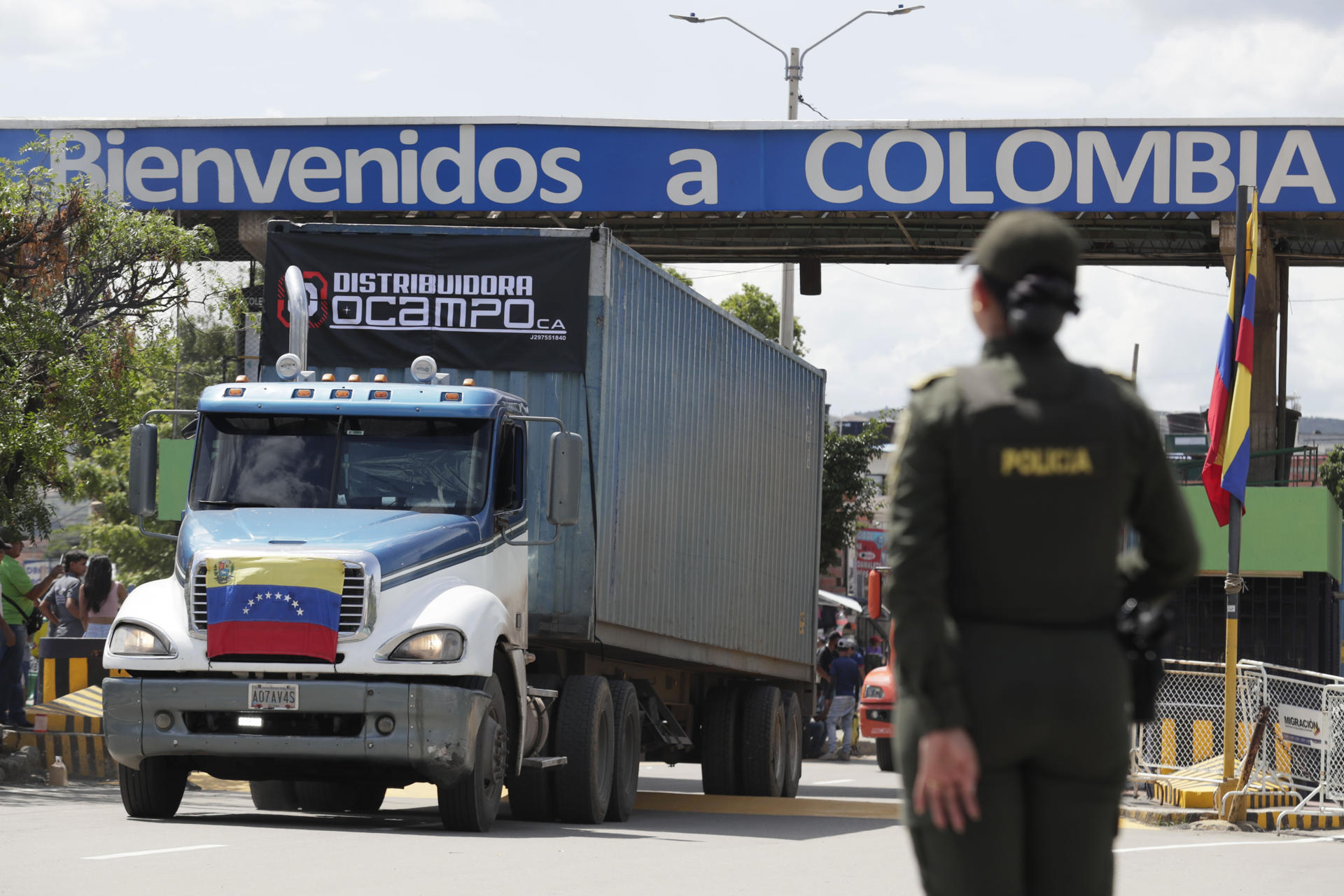Fotografía de archivo del 26 de septiembre de 2022 que muestra un camión cruzando el puente Simón Bolívar desde Colombia hacia Venezuela durante un acto de reapertura de la frontera entre los dos países en Cúcuta (Colombia). EFE/ Carlos Ortega