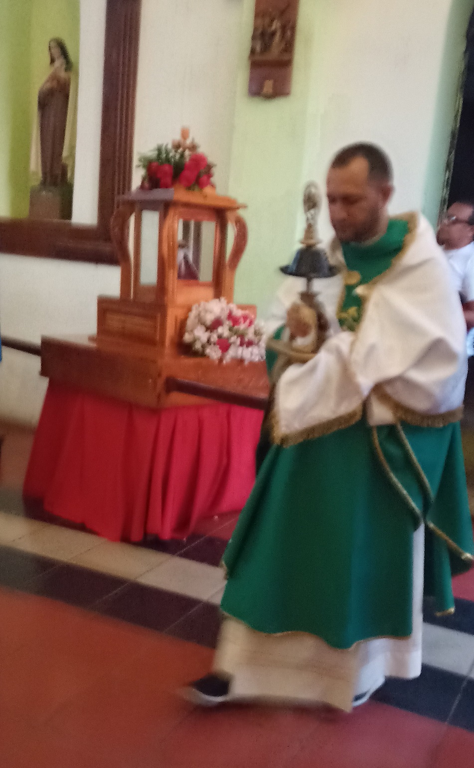 Destaca dentro de la actividad cumplida en el templo San Juan Bautista, el recorrido que hizo el padre Mervín Fuentes por todos los asientos del templo, donde cada uno de los fieles tuvo la oportunidad de tocar la reliquia y decir el: “En nombre del padre del hijo y del espíritu Santo, amen” y elevar su respectiva oración.