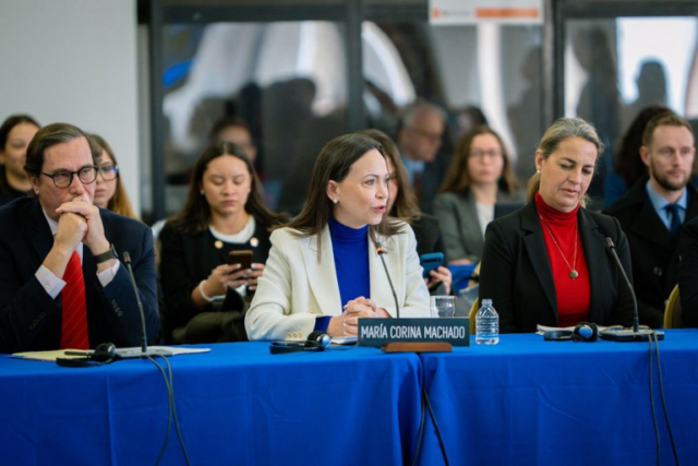 La líder opositora venezolana María Corina Machado se reunió este lunes con el pleno de la Comisión Interamericana de Derechos Humanos (Cidh), en la sede de la Organización de los Estados Americanos (OEA), para exponer la situación actual de los derechos humanos en Venezuela y formular un conjunto de peticiones concretas en favor de los presos políticos.