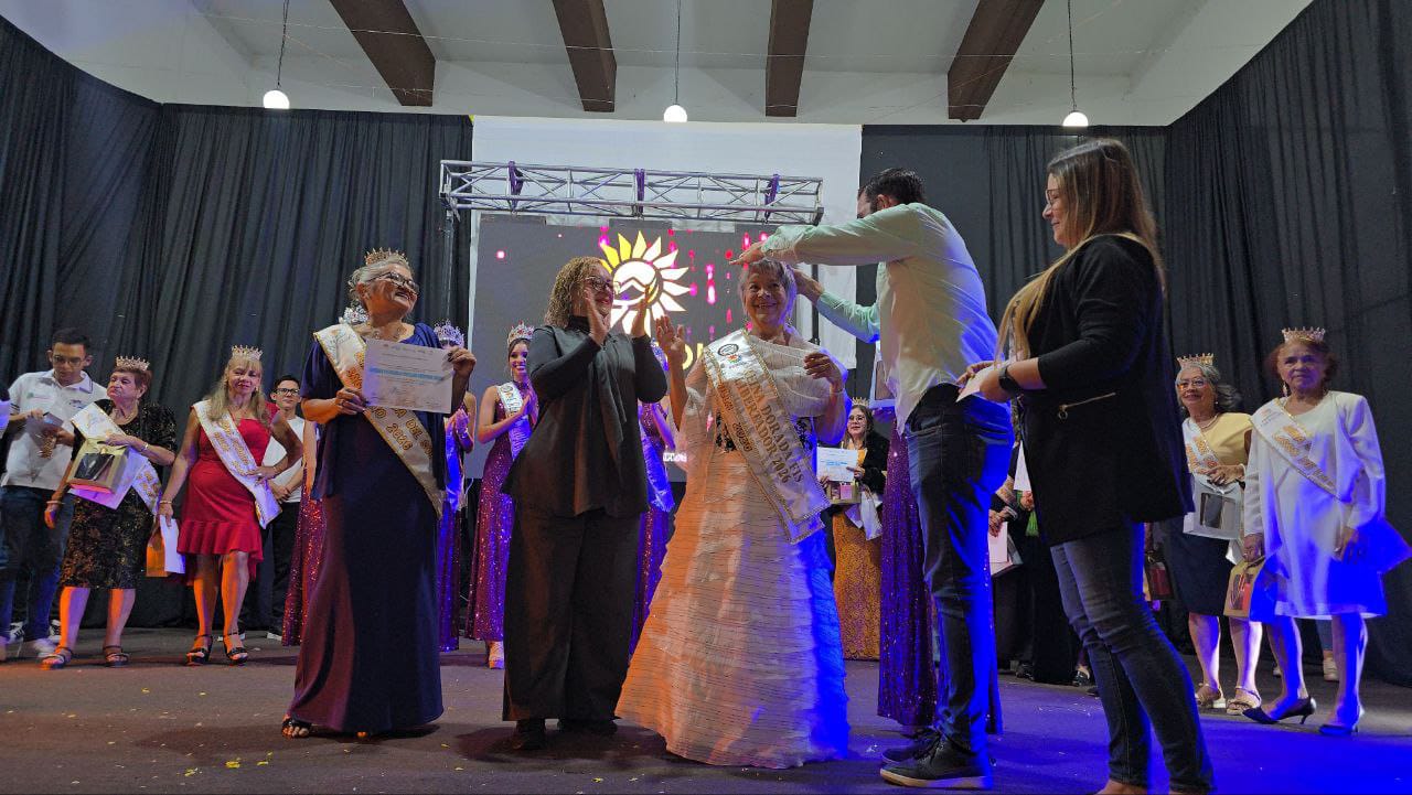 La corona da la Reina Dorada 2026 fue otorgada a Elvina del Carmen Avendaño, representante de la parroquia Milla a sus 82 años, la destacada repostera y costurera conmovió a los presentes al expresar que su participación representa el cumplimiento de un sueño personal.