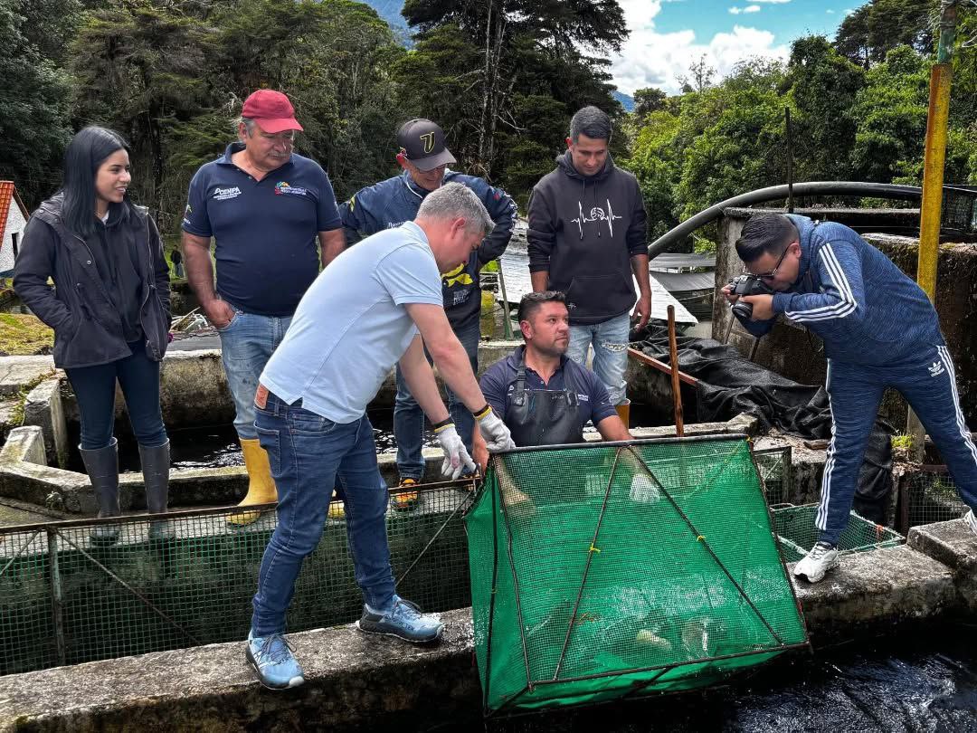 La visita técnica fue encabezada por el director ejecutivo del Cenipa, Eric Ricardo Martínez, quien junto a trabajadores de la estación evaluó el funcionamiento integral de las instalaciones y constató el progreso en cada fase del ciclo productivo de la trucha arcoíris (Oncorhynchus mykiss), desde el desove y la reproducción, hasta la cría y el engorde.