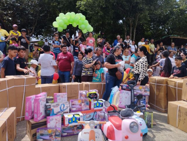 En el municipio Zea, más de 600 niños y niñas de la parroquia Caño El Tigre recibieron regalos en esta víspera de Navidad. La directora del Ministerio del Poder Popular para las Comunas, Evelin Quintero, acompañó la actividad junto a los enlaces políticos del Partido Socialista Unido de Venezuela (PSUV) y representantes del poder popular.