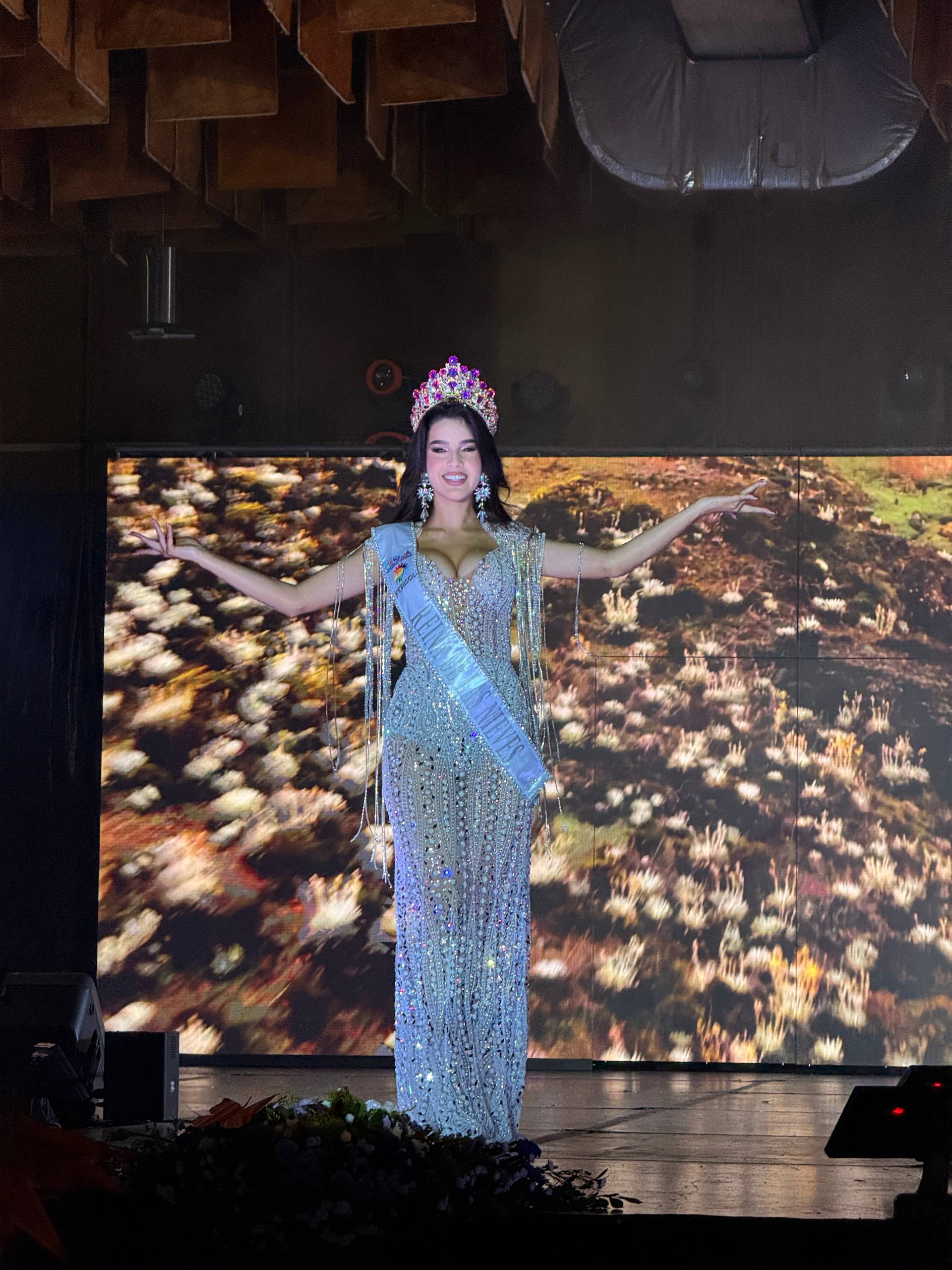 La velada tomó vida con una extraordinaria producción musical denominada “Entre Nieve, Sol y Belleza”, una manifestación cultural que permitió un recorrido emotivo por las regiones del estado, dedicada a sus valores, idiosincrasia y paisajes. Este momento resaltó la representación de la mujer merideña, su gentilicio y elegancia.