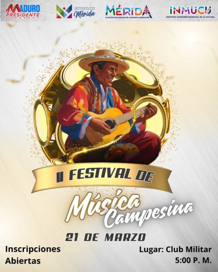 Para celebrar las raíces musicales y enaltecer la cultura autóctona de los campos merideños, desde el Instituto Municipal de la Cultura, Conservación, Documentación y Estudios Históricos de la alcaldía del Libertador, se ha organizado el II Festival de Música Campesina.