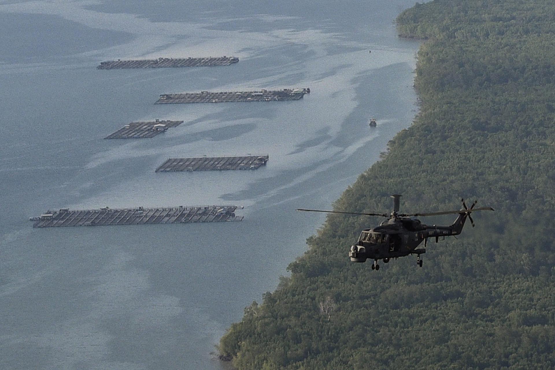 Imagen de archivo de un helicóptero Super Lynx de la Marina Real de Malasia patrullando el Estrecho de Malaca, Malasia, el 13 de junio de 2016. EFE/EPA/STR MALAYSIA OUT[MALAYSIA OUT]
