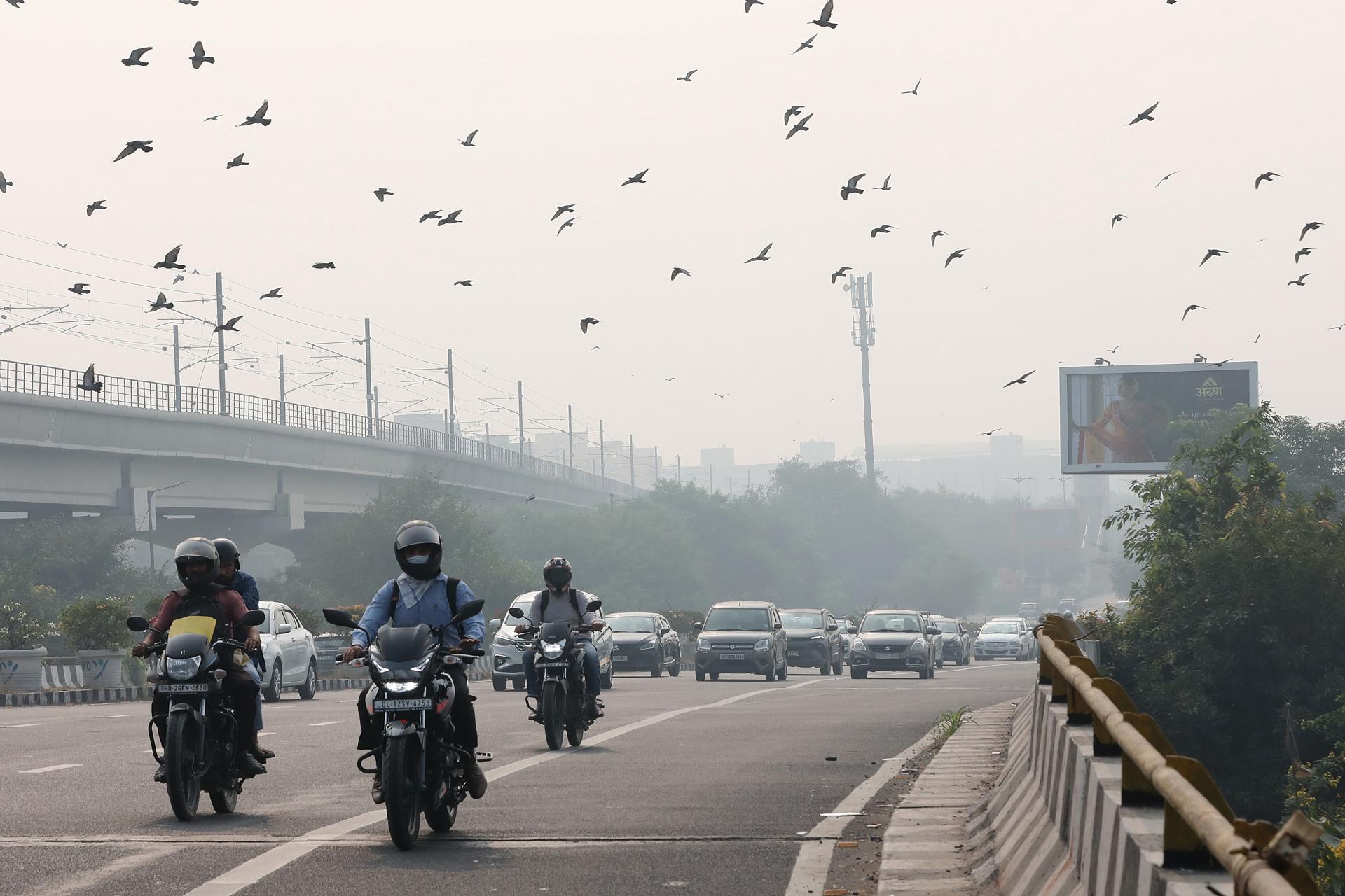 Las emisiones contaminantes de los vehículos, el polvo de la construcción o la quema de rastrojos de los cultivos en los estados vecinos a la capital contribuyen también al pico de contaminación.