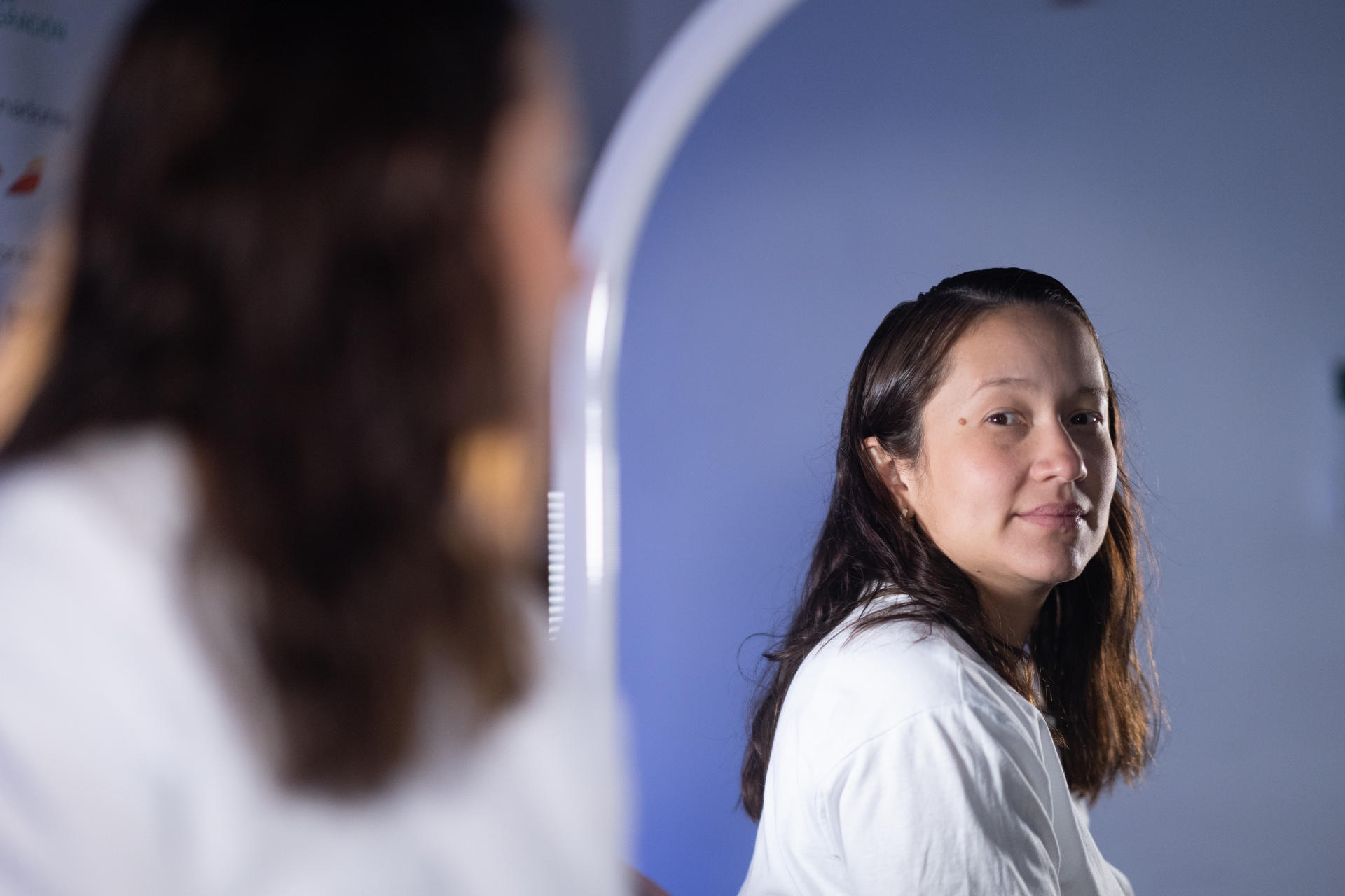 María Gómez esposa del gendarme argentino detenido en Venezuela, Nahuel Gallo, posa durante una entrevista con EFE este miércoles, en Buenos Aires (Argentina). EFE/ Juan Ignacio Roncoroni
