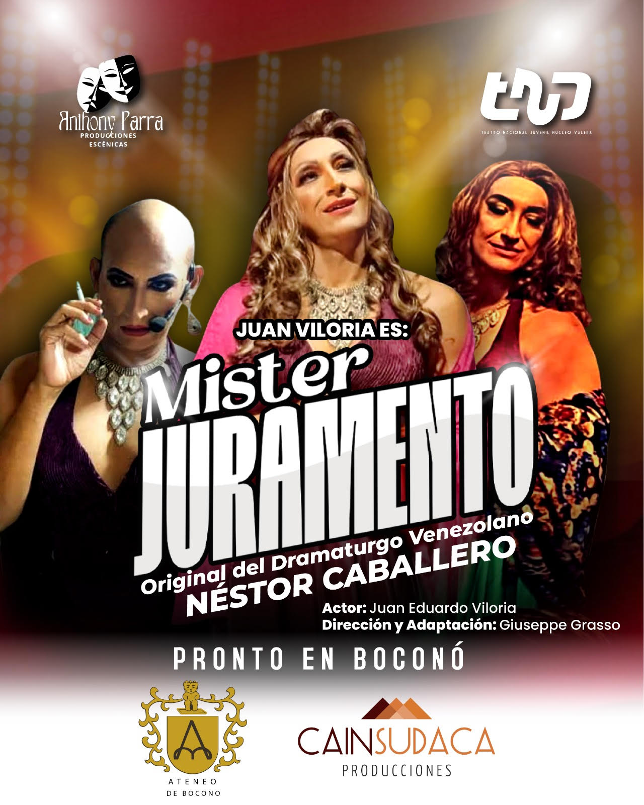 «MISTER JURAMENTO» es una obra original de Néstor Caballero, bajo la dirección de Giuseppe Grasso y con Juan Viloria con la actuación estelar y se presentará en las instalaciones del Ateneo de Boconó.