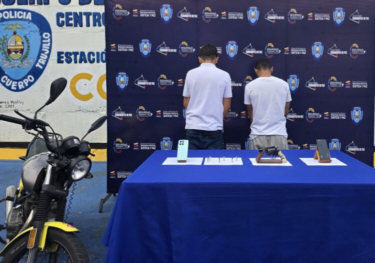 La detención se realizó en el sector La Floresta, municipio Valera estado Trujillo, mediante un trabajo de investigación de campo y cerco policía, los sujetos quedaron identificados como: García, A. menor de edad (conductor del vehículo tipo moto) y Alvarez, D. quien posee solicitud previa ante el Ministerio Público.