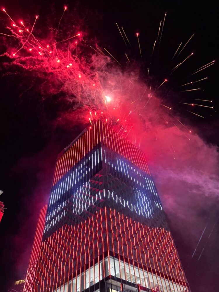 El tricolor nacional brilla más fuerte que nunca. La noche de este 18 de marzo, la imponente Torre Damasco, única en el país con la tecnología necesaria para realizar proyecciones de esta magnitud, se vistió de gala para rendir homenaje a nuestros eternos Campeones del Clásico Mundial de Béisbol.
