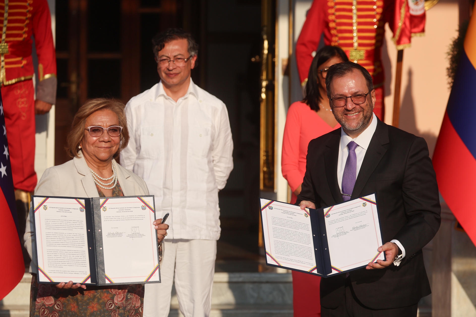 Durante el encuentro, los cancilleres Yván Gil, de Venezuela, y Rosa Villavicencio, de Colombia, firmaron el acta final de la III Comisión de Vecindad e Integración que se celebró entre el jueves y este viernes en Caracas y que se enmarcaba en la necesidad de «unión» entre ambos países.