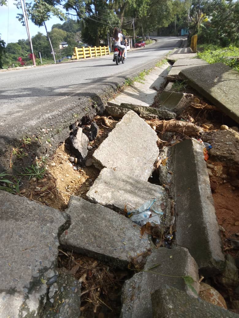 Los vecinos de estos sectores, incluyendo San Rafael y El Chaíto, nos refieren que las aceras, de la parte derecha al final de la capital pampanense hasta Flor de Patria se encuentran totalmente destruidas debido al paso de vehículos pesados y las cargas pluviométricas, como producto de las lluvias, esto por falta de cunetas y brocales aptos, aunado a la falta de mantenimiento y la caída de sendos árboles vetustos que se desplomaron hace varios meses por la borrascas y vientos huracanados, lo que ha agravado la situación, propiciando un ambiente dantesco a propios y visitantes.