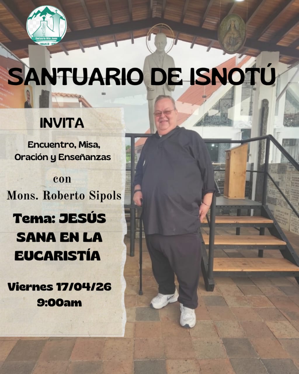 El presbítero José Magdaleno Álvarez, Rector del Santuario Niño Jesús, está invitando a una jornada de oración que se cumplirá en el señalado lugar a partir de las 9 de la mañana del viernes 17 de abril, la cual estará a cargo de Monseñor Roberto Sipols, versando las oraciones sobre el tema “Jesús Sana en la Eucaristía”.