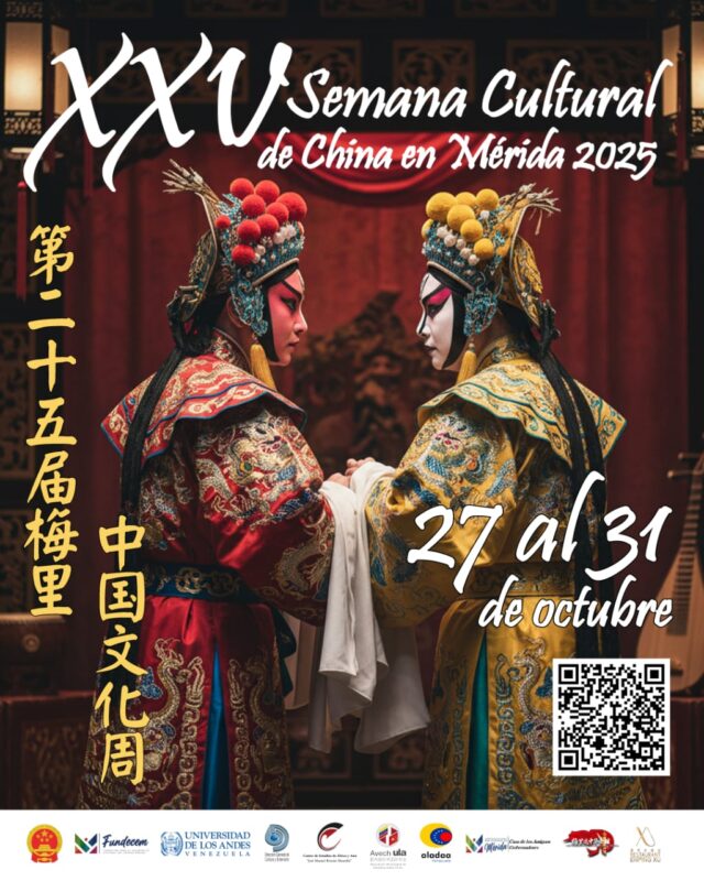 Mérida, octubre de 2025 – Del 27 al 31 de octubre se llevará a cabo la XXV Semana Cultural de China en Mérida, una iniciativa que celebra el intercambio cultural, académico y comercial entre Venezuela y la República Popular China. El evento, cuenta con el auspicio de la Embajada de la República Popular China en Venezuela, el Centro de Estudios de África y Asia “Dr. José Manuel Briceño Monzillo” de la Universidad de Los Andes (CEAA-ULA) y la Asociación Venezolana de Estudios sobre China (AVECH), junto a más de 30 instituciones públicas y privadas, ofreciendo una programación diversa y gratuita en múltiples espacios de la ciudad.
